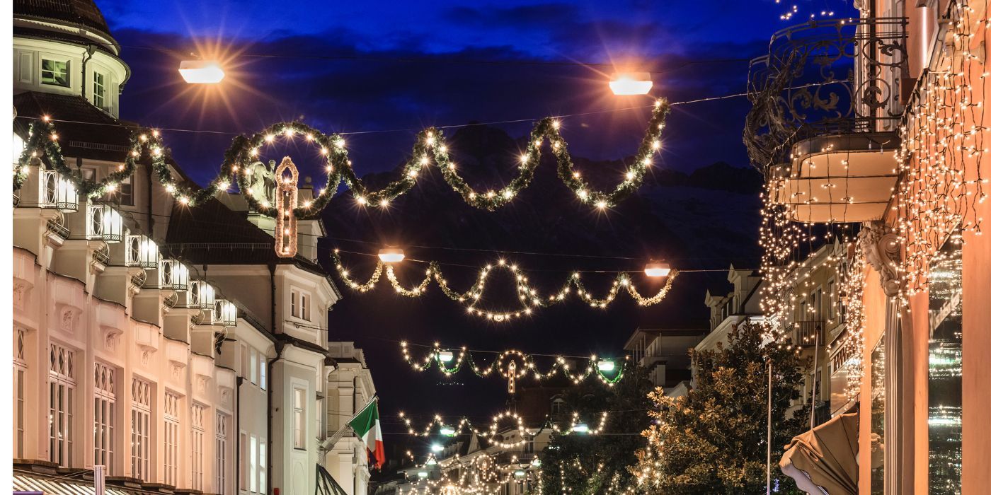 A Merano, in Alto Adige, il mercatino di Natale è una vera e propria esperienza sensoriale. Tra le bancarelle si possono trovare prodotti artigianali, sono famose soprattutto le candele fatte a mano, i tessuti artigianali e le decorazioni in legno, e specialità locali: da provare lo speck, i canederli e la krapfen, tipici della regione.